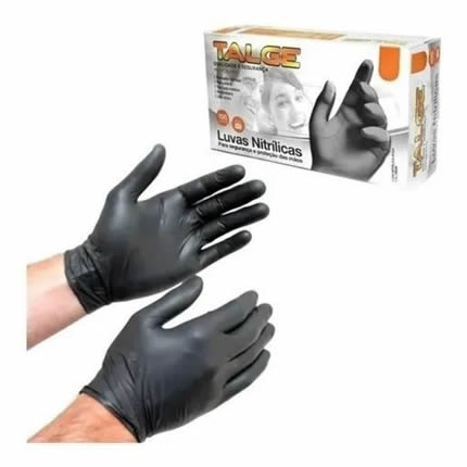 Luva nitrílica descartável preta com 100 TALGE